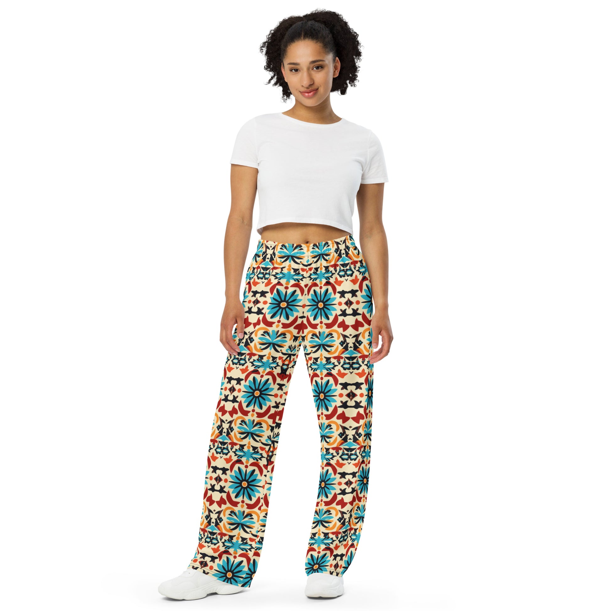 Geometric Art Super Soft Wide-leg Pajama/Sweats Bottoms are printed in USA