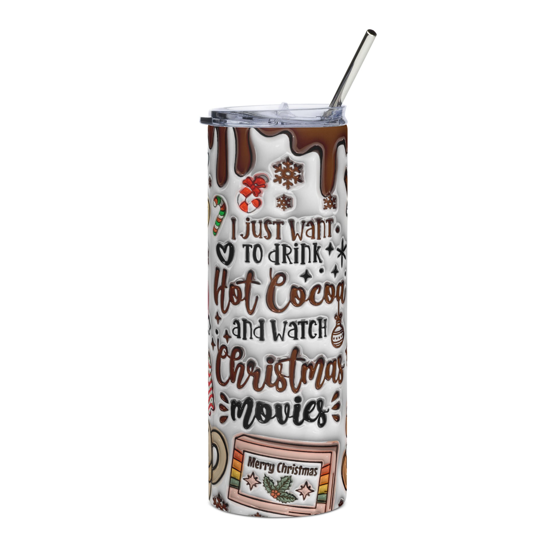 I Just want to Drink Hot Cocoa and Watch Christmas Movies Stainless Steel Tumblers are printed in USA