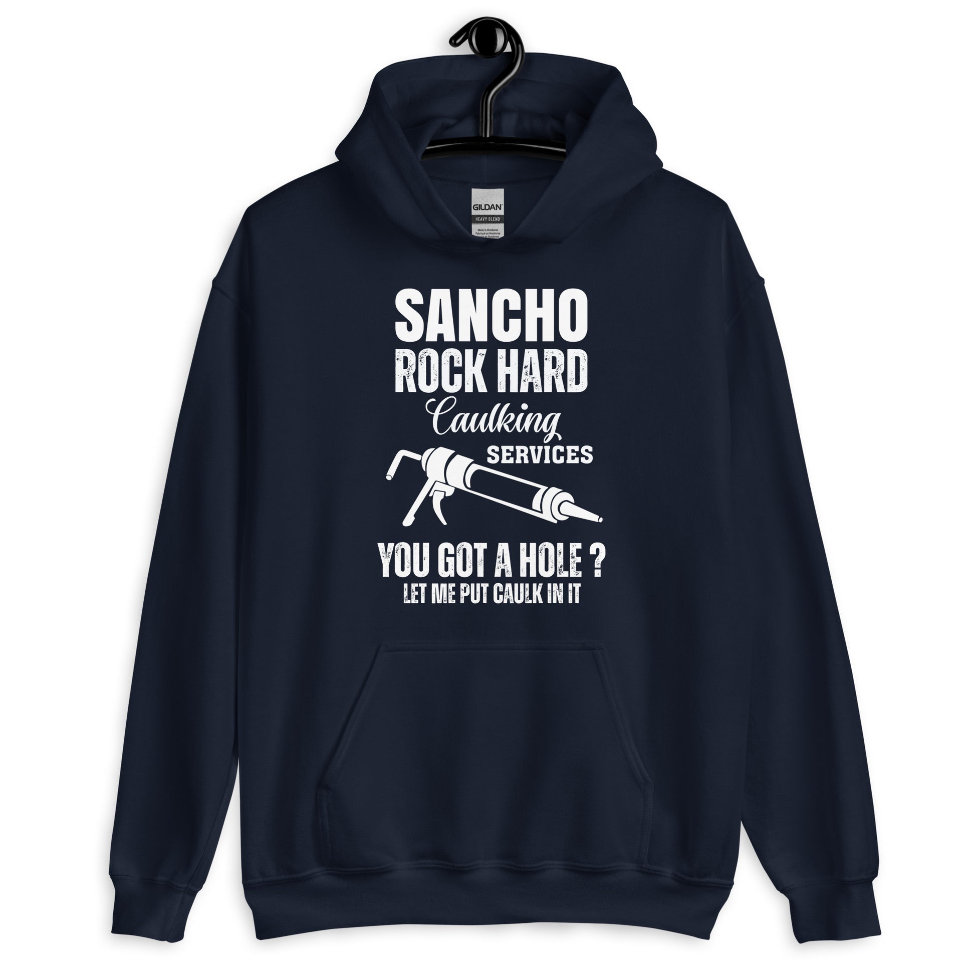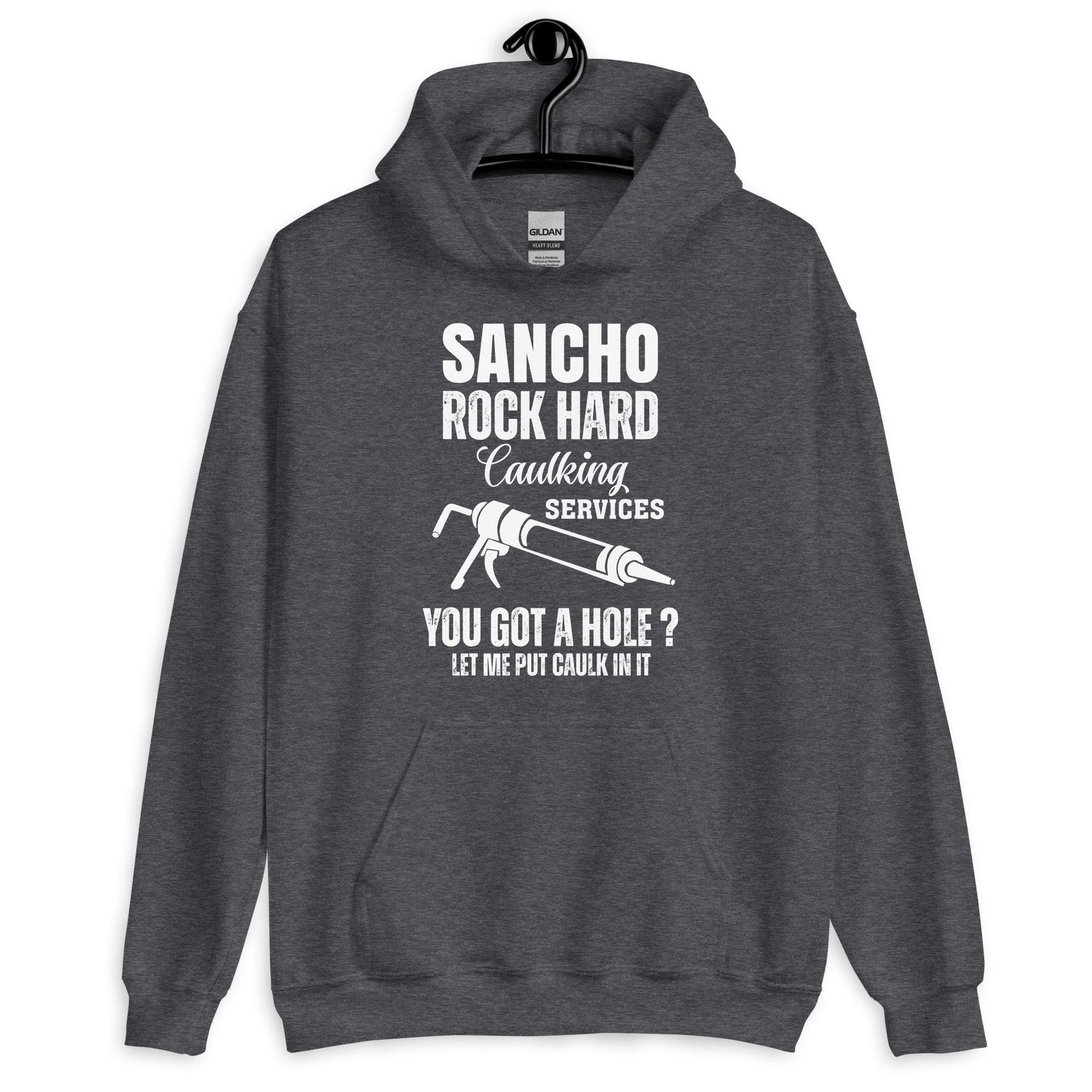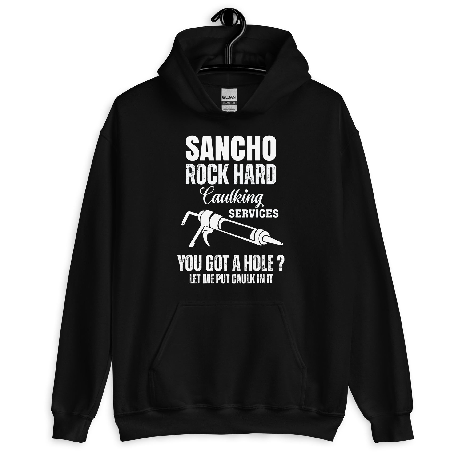 Sancho Rock Hard Caulking Services Hoodies are printed in USA
