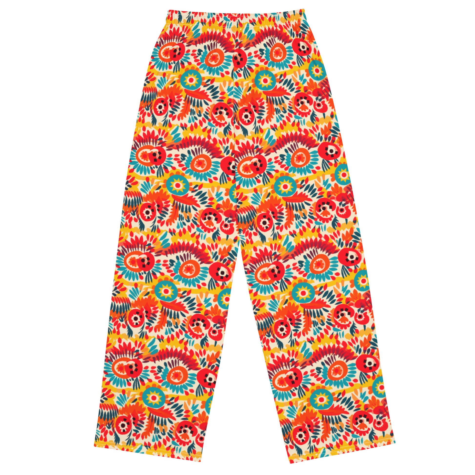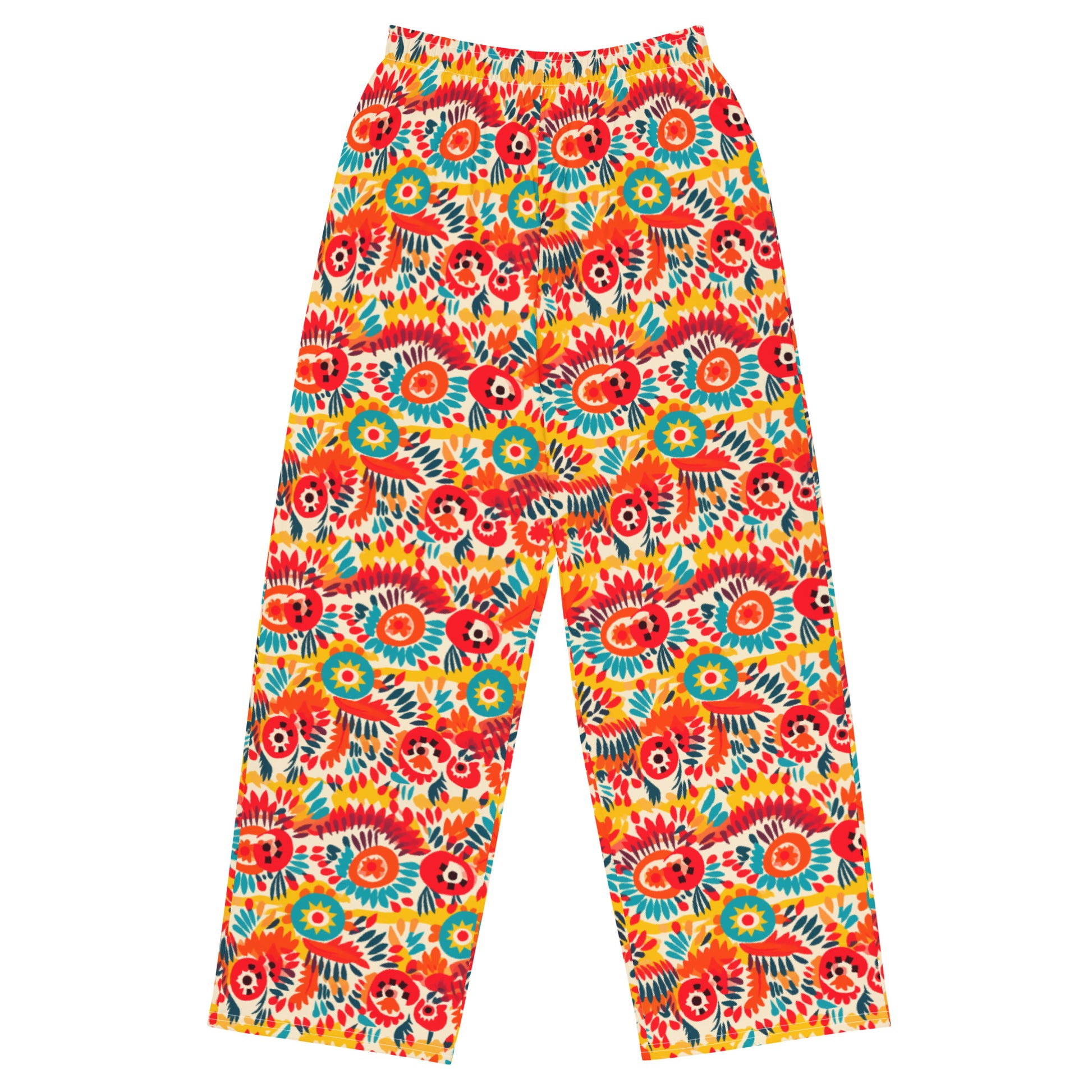 Shades of Orange Mexican Floral Soft Wide-leg Pajama/Sweats Bottoms are printed in USA