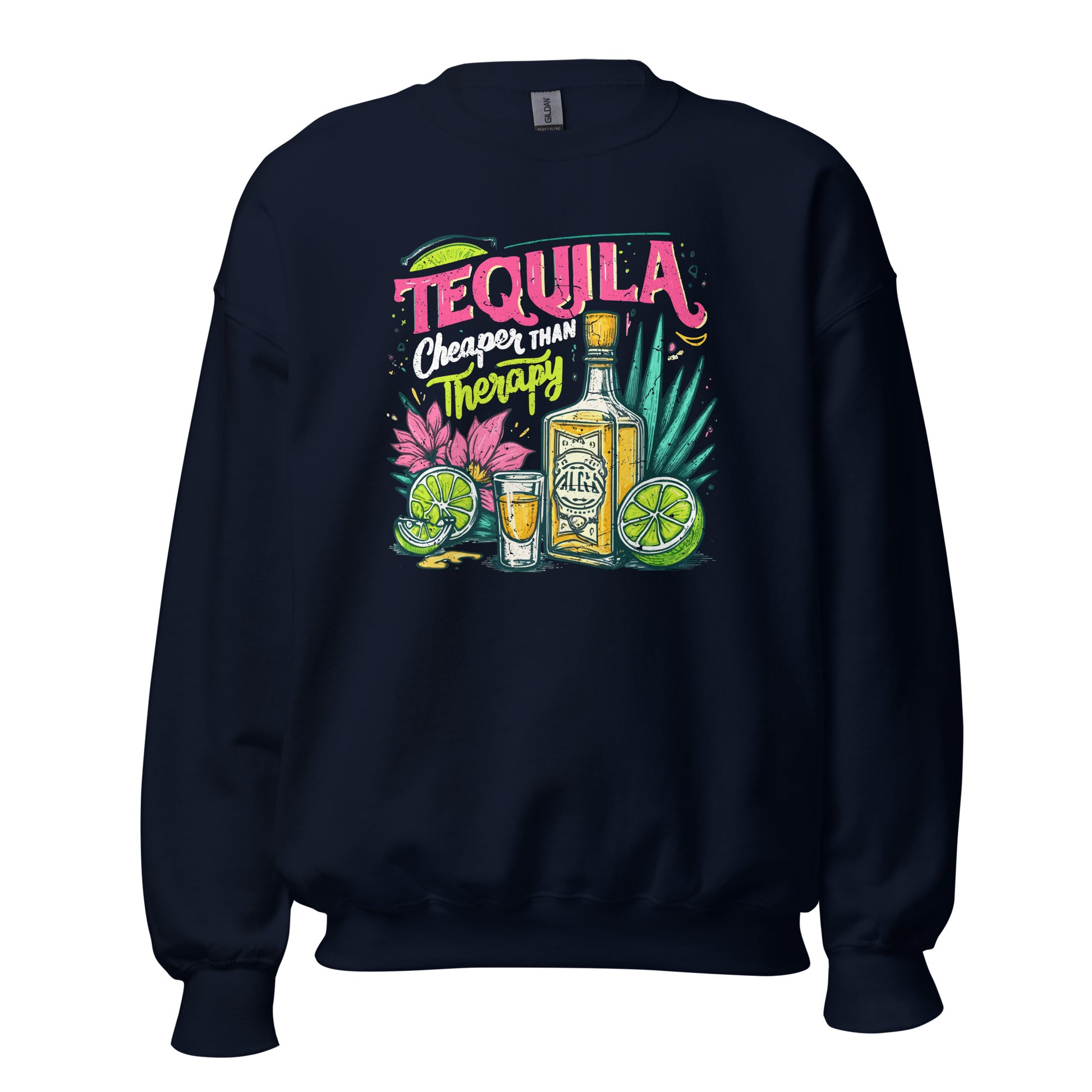 Tequila Cheaper Than Therapy Sweatshirts are printed in USA